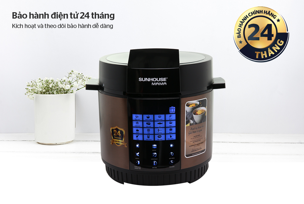 Sản phẩm thuộc thương hiệu Mama – dòng sản phẩm cao cấp của Tập đoàn SUNHOUSE và được áp dụng bảo hành chính hãng lên đến 24 tháng. Ngoài ra, bạn có thể dễ dàng kích hoạt bảo hành ngay từ khi mới mua về bằng cách nhắn tin điện thoại và theo dõi chế độ bảo hành dễ dàng.