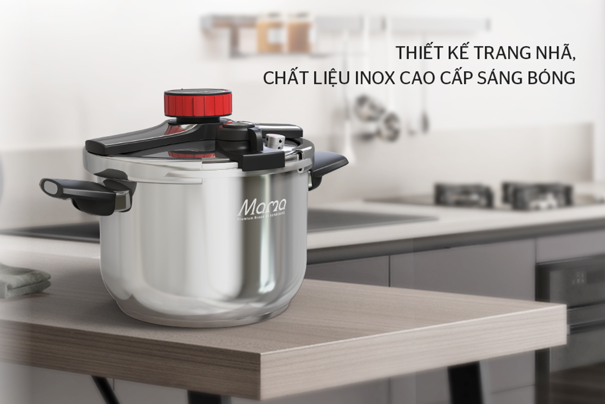 NỒI ÁP SUẤT INOX 304 ĐÁY TỪ SUNHOUSE MAMA SHG9906M có thiết kế trang nhã với chất liệu inox 304 cao cấp sáng bóng phù hợp với nhiều không gian bếp. Chất liệu inox không oxy hóa với độ dày gấp 2 lần giúp hạn chế móp méo khi va đập, dễ dàng vệ sinh sau khi nấu và an toàn khi đun nấu với áp suất cao đồng thời duy trì sự sáng bóng.