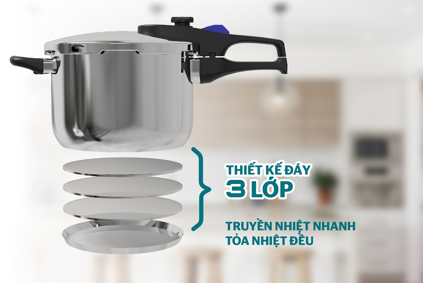 Đáy 3 lớp truyền nhiệt nhanh, tỏa nhiệt đều