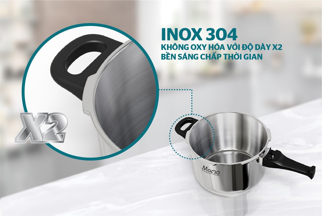 Sản phẩm được trang bị van xả 3 cấp độ và van an toàn, tự động xả áp khi áp suất trong nồi vượt quá mức cho phép, đảm bảo an toàn cho người sử dụng. Ngoài ra, với chất liệu inox 304 cao cấp, sản phẩm có độ bền vượt trội, chống va đập tốt, hạn chế trầy xước, sáng bóng, bền đẹp với thời gian.