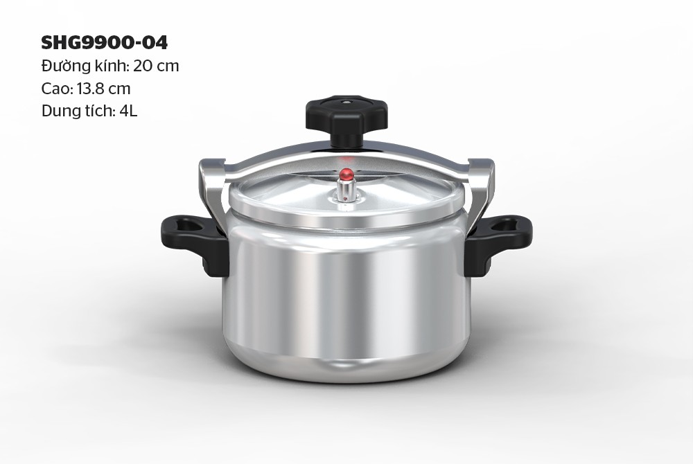 Nồi áp suất nhôm SUNHOUSE SHG9900-04 với thiết kế nhôm nguyên chất dày dặn, nắp nồi kín khít giúp thức ăn được nấu chín nhanh chóng dưới nhiệt độ và áp suất cao, vừa nhanh chóng mà vẫn đảm bảo được yếu tố ngon - dinh dưỡng.
