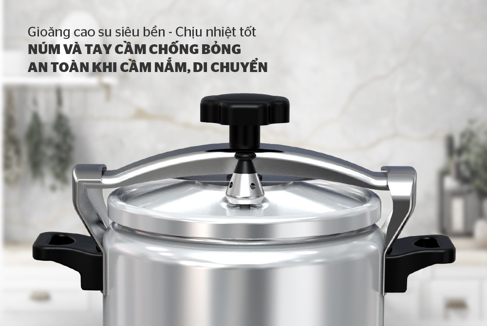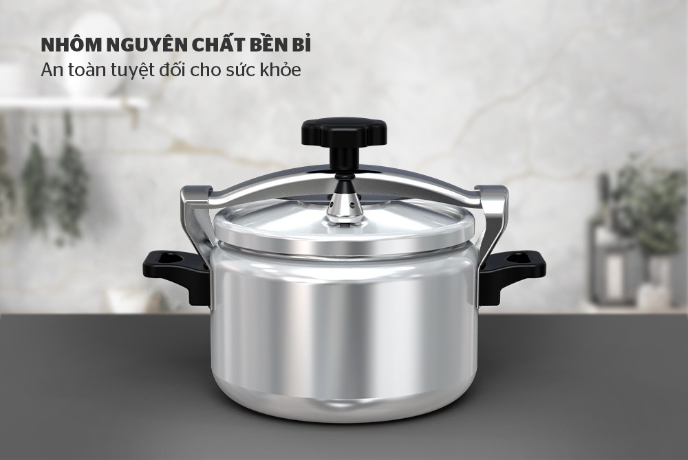Sản phẩm được trang bị van xả 3 cấp độ và van an toàn, tự động xả áp khi áp suất trong nồi vượt quá mức cho phép, đảm bảo an toàn cho người sử dụng. Ngoài ra, với chất liệu nhôm cao cấp, sản phẩm có độ bền vượt trội, hạn chế trầy xước, sáng bóng, bền đẹp với thời gian.