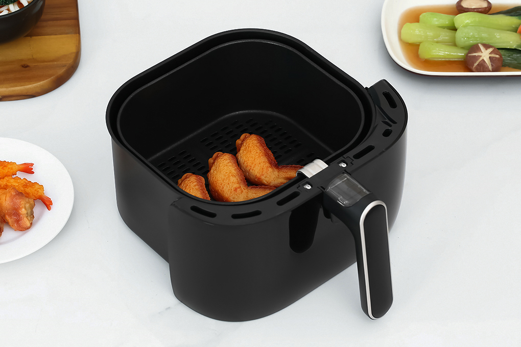 - Thiết kế viewdoor mặt trước trong suốt và đèn chiếu sáng bên trong, thuận tiện quan sát thực phẩm trong quá trình chiên nướng.