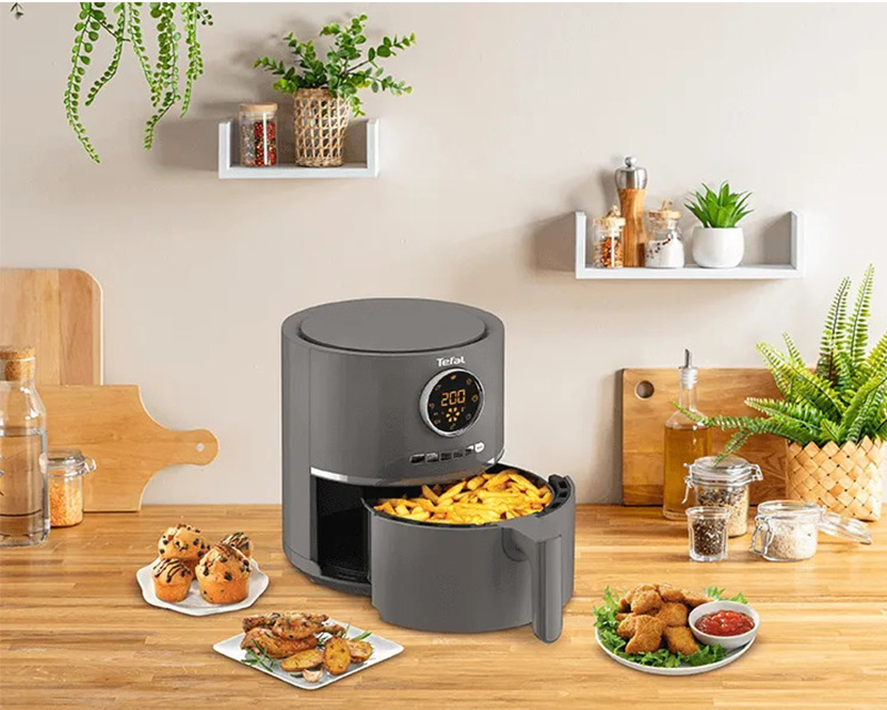 Nồi chiên không dầu Tefal EY111B15 có thiết kế khá nhỏ gọn phù hợp với mọi không gian nhà bếp. Ngoài ra, sản phẩm có màu xám là chủ đạo sẽ giúp căn bếp nhà bạn trở nên sang trọng hơn, thêm vào đó vỏ ngoài được làm bằng nhựa có khả năng chịu được nhiệt độ cao.