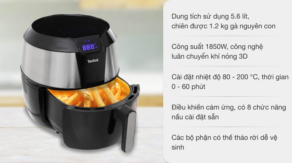 Nồi chiên không dầu Tefal 5.6 lít EY701D15 là sản phẩm đẹp mắt, tiện ích, an toàn khi sử dụng và phù hợp với mọi gia đình.