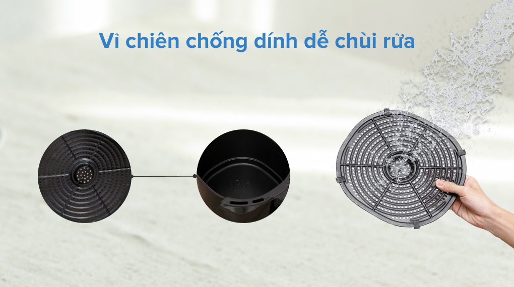 Vỏ ngoài nồi chiên có thể dễ dàng lau chùi và làm sạch. Rổ chiên và khay hứng mỡ thừa của nồi chiên đều được phủ chống dính cao cấp siêu bền, hạn chế cháy khét và chống bám dính thực phẩm giúp các vết bẩn được tẩy sạch nhanh chóng. Các bộ phận của nồi có thể tháo rời linh hoạt giúp vệ sinh máy trở nên dễ dàng, vô cùng tiện lợi.