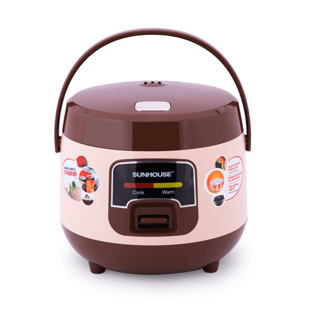 Nồi cơm điện SUNHOUSE SHD8208C có thiết kế đơn giản, màu cà phê ấn tượng, tạo cảm hứng nấu nướng cho người nội trợ và tô điểm thêm cho gian bếp.