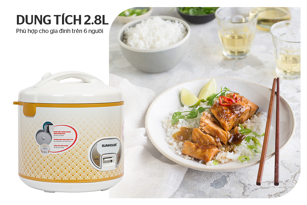 Dung tích 2.8L phù hợp với những gia đình nhiều thế hệ, từ 6 người trở lên. Ngoài ra, với xửng hấp đi kèm, bạn có thể làm thêm nhiều món ngon như đồ xôi, hấp bánh, hấp khoai… với chỉ một chiếc nồi cơm điện.