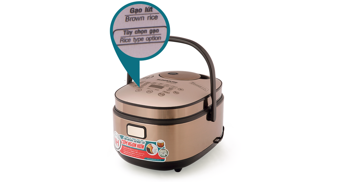 Chế độ: Nấu cơm theo loại gạo, súp, cháo; hâm nóng; làm bánh; hấp; giữ ấm