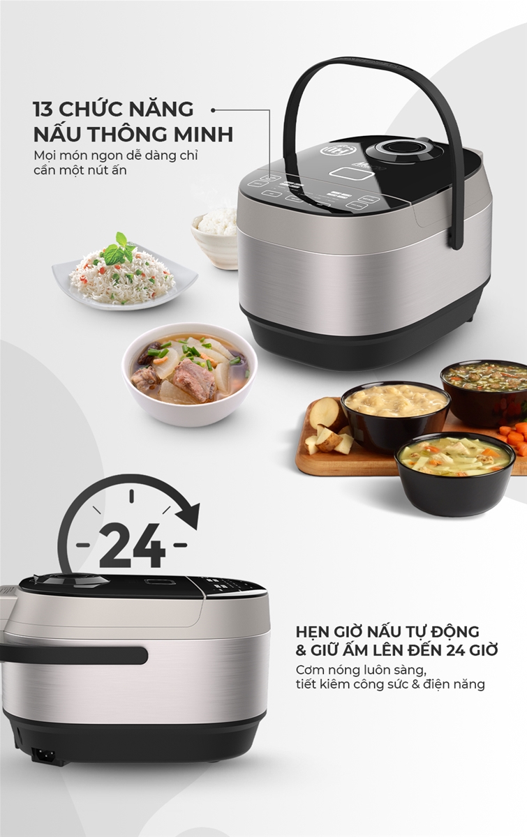 - 13 chế độ nấu cài đặt sẵn, thông minh, tiết kiệm thời gian
