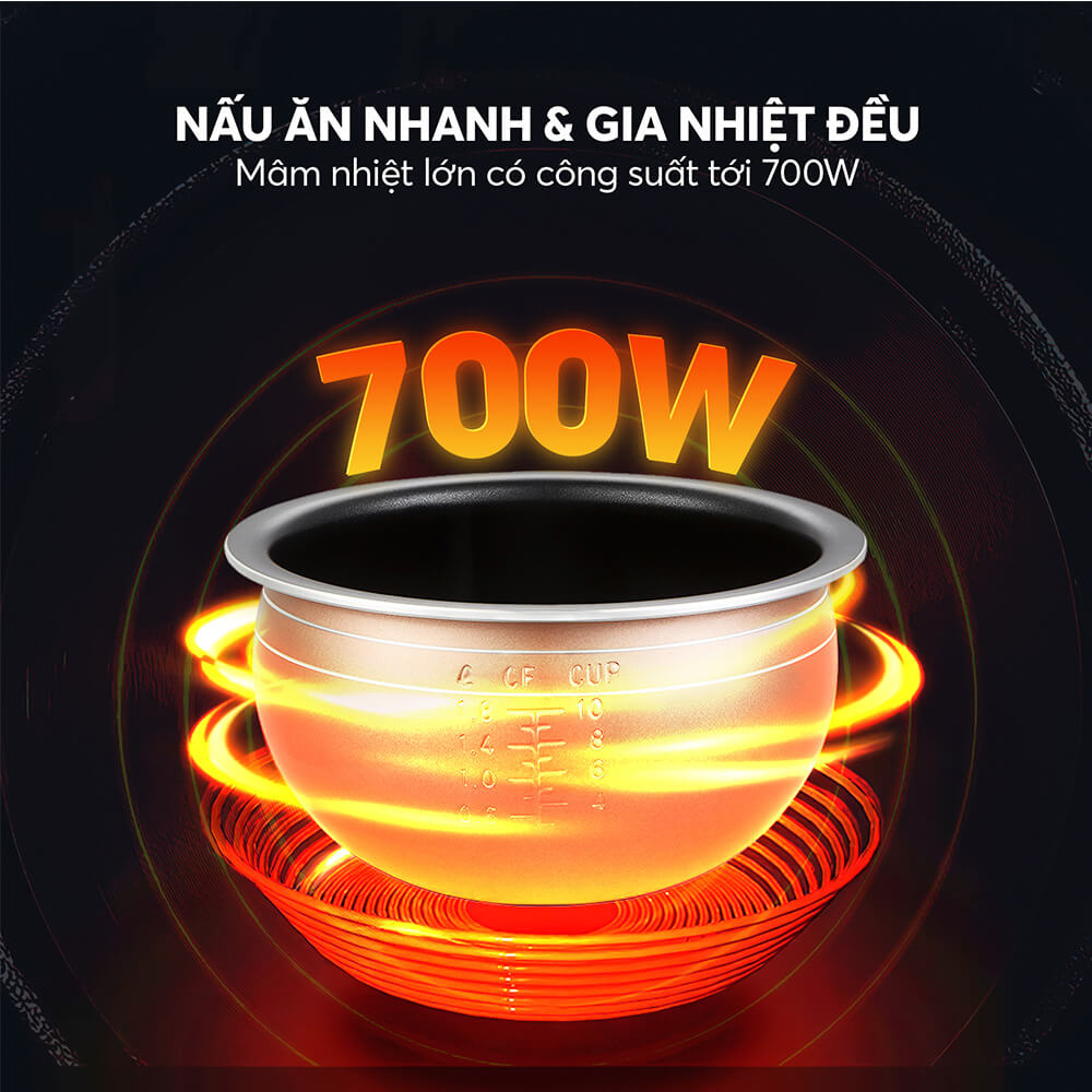 Đảm bảo truyền nhiệt đều, giúp cơm chin đồng nhất.