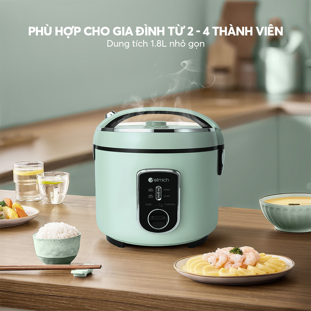 Với dung tích 1.8L, nồi cơm Elmich RCE 9252 là lựa chọn lý tưởng cho gia đình từ 4-6 người, giúp bạn chuẩn bị bữa ăn nhanh chóng, tiết kiệm thời gian nhưng vẫn đảm bảo chất lượng món ăn.