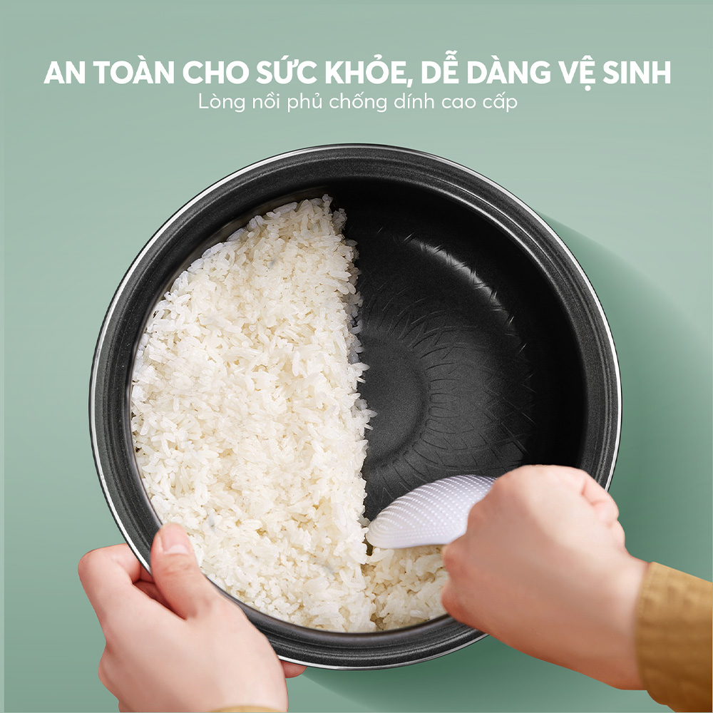 - Lòng nồi dày phủ chống dính cao cấp: Dày 2.8mm với lớp chống dính cao cấp, giúp cơm không bị dính, đồng thời đảm bảo độ bền và dễ vệ sinh.