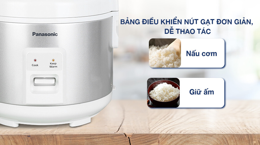 - Nồi cơm điện Panasonic màu sắc trung tính, thanh lịch, tiện bố trí trong nhiều không gian bếp.