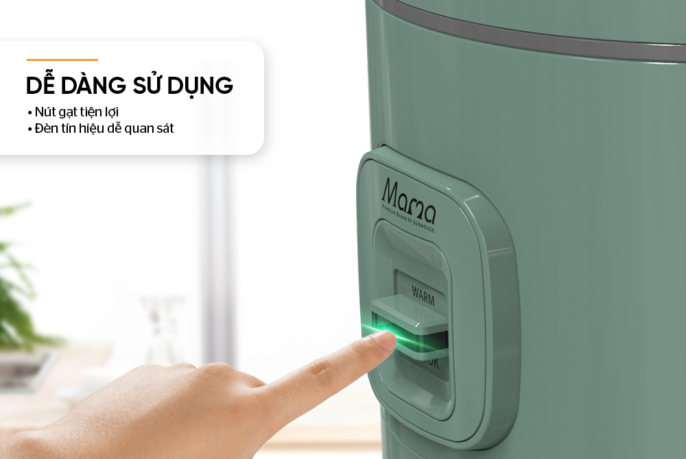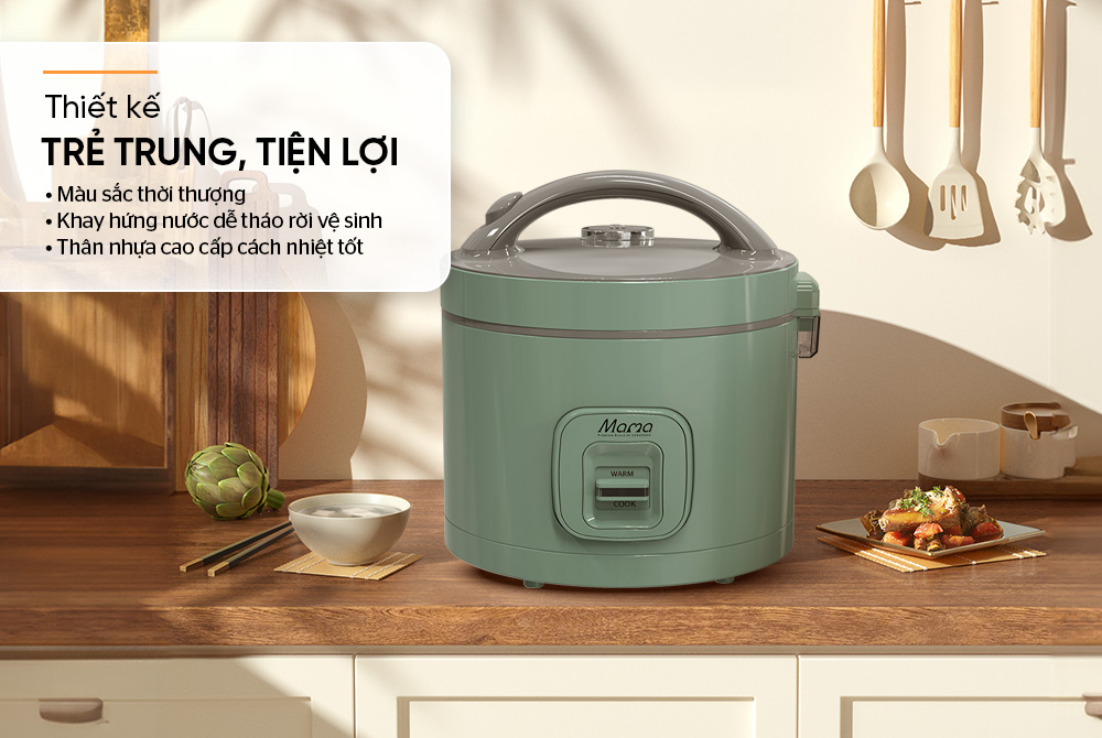 Nồi cơm điện 1.8L SUNHOUSE MAMA SHD8666G nổi bật với màu xanh lá thời thượng, khơi gợi cảm hứng nấu nướng cho người nội trợ và tô điểm thêm màu sắc tươi tắn cho gian bếp.