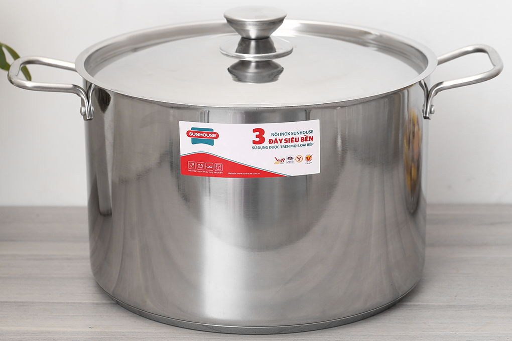 Nồi Inox 3 đáy nắp inox 30 cm Sunhouse SHG300-30 thiết kế gọn đẹp, đường kính 30 cm, chất liệu inox cao cấp bền bỉ, sử dụng được mọi loại bếp, lựa chọn dành cho người tiêu dùng Việt.