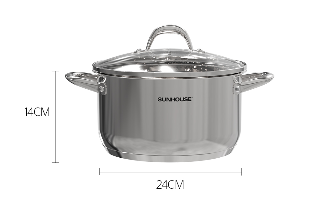 Nồi SHG301-24 3 đáy của SUNHOUSE được sản xuất từ inox an toàn với sức khỏe, với độ bền cao và thiết kế sang trọng. Nồi được trang bị vung kính cường lực bền bỉ. Loạt nồi này có nhiều kích cỡ khác nhau, mang đến sự đa dạng trong việc chọn lựa cho bạn.
