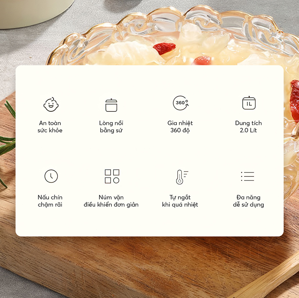 – Dung tích 2L, thích hợp dùng nấu cháo, súp, các món hầm,… cho bé hoặc cho gia đình nhỏ từ 2 – 3 thành viên.