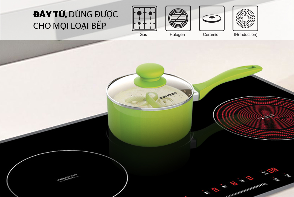 Đáy nồi: Đáy từ, sử dụng trên mọi loại bếp