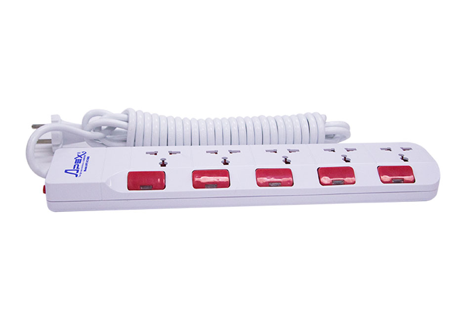 Ổ cắm điện APE-OC1-5RD thiết kế nhỏ gọn gồm 5 ổ cắm 3 chấu với 5 đèn báo và công tắc riêng, ngoài ra chiều dài dây lên đến 4,5m giúp dễ dàng sử dụng ở những không gian rộng.