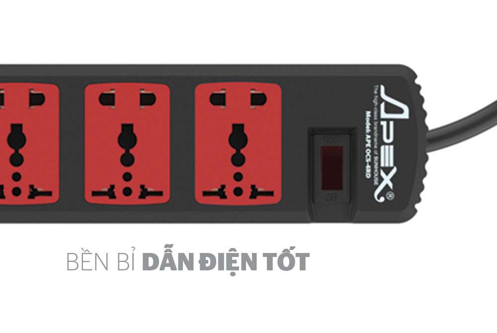 Ổ cắm điện là sản phẩm tưởng chừng như đơn giản nhưng lại rất cần thiết trong mỗi hộ gia đình. Lựa chọn ổ cắm điện bên cạnh các tiêu chí bền, tiện dụng, an toàn thì yếu tố thẩm mỹ cũng đang được người tiêu dung rất quan tâm. Với thiết kế đơn giản, gọn nhẹ nhưng vẫn đầy đủ các tính năng chính, ổ cắm điện APE-OC5-4RD thương hiệu APEX (Thương hiệu cao cấp của SUNHOUSE) chắc chắn sẽ rất phù hợp với nhiều không gian hiện đại ngày nay.