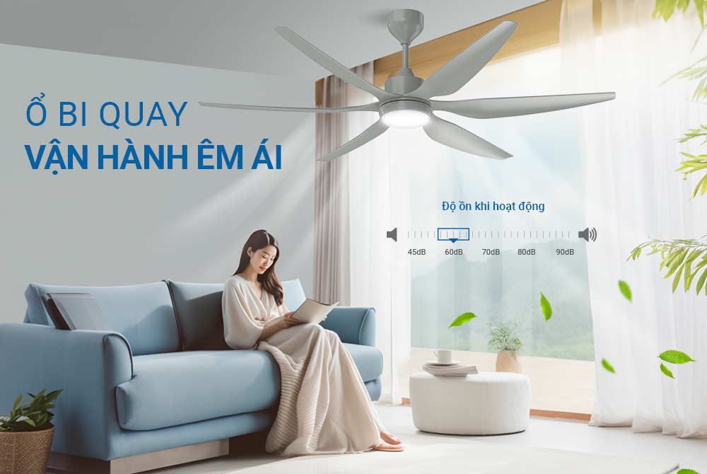 Quạt trần SUNHOUSE APEX 6 cánh APF7698 hoạt động với độ ồn thấp ≤ 60dB, mang lại không gian yên tĩnh và thoải mái cho gia đình. Nhờ động cơ DC tiên tiến, quạt vận hành mượt mà, giảm thiểu tiếng ồn hiệu quả, phù hợp sử dụng cả trong không gian làm việc hoặc nghỉ ngơi.
