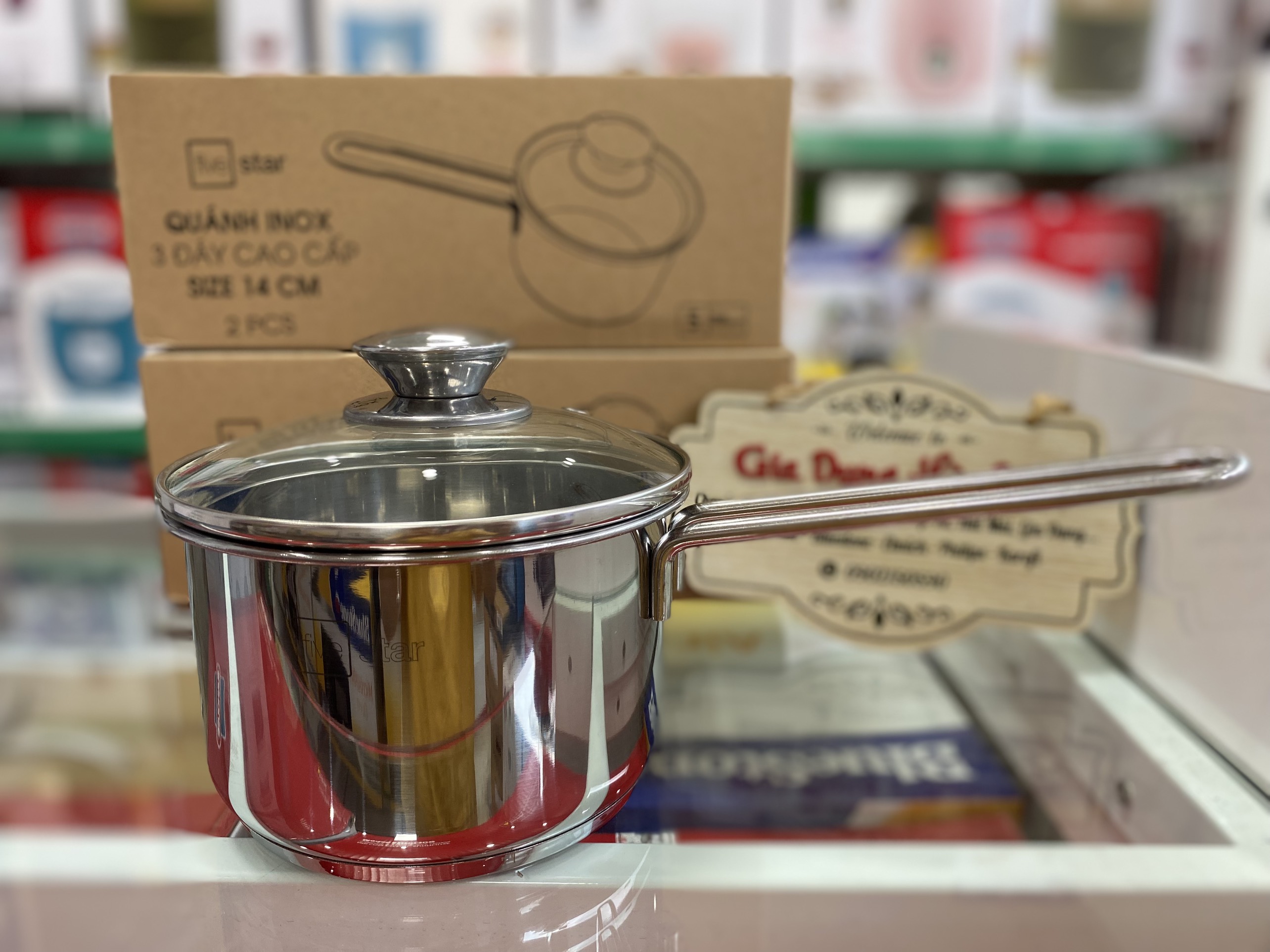 Quánh inox 3 đáy 14 cm Fivestar được làm 100% chất liệu inox cao cấp là những thiết bị nhà bếp có nhiệm vụ làm yên tâm các bà nội trợ bởi những ưu điểm riêng biệt. Đáy nồi có cấu tạo 3 lớp: 2 lớp ngoài là inox và lớp giữa là hợp kim nhôm. Cấu tạo này giúp nồi thu nhiệt nhanh, tỏa nhiệt đều nên khi sử dụng phần nhiệt lượng không tập trung ở chính giữa nồi, giúp tránh tình trạng cháy thực phẩm trong quá trình nấu nướng.
