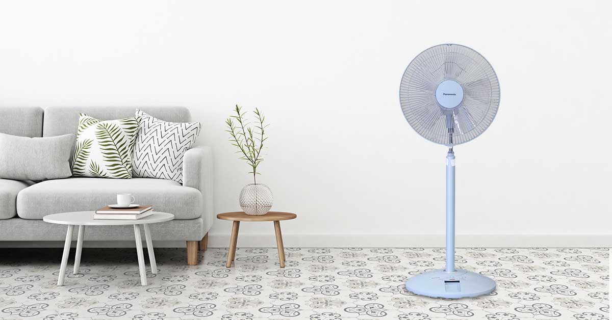 Quạt cây Panasonic F-308NHB màu xanh trang nhã, kiểu dáng mềm mại sang trọng, sử dụng thích hợp cho nhiều không gian kiến trúc.