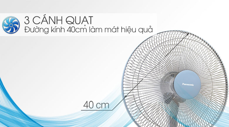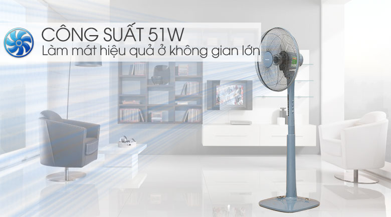- Thiết kế 3 cánh, đường kính lớn 40 cm kết hợp với công suất mạnh mẽ 51 W, cho khả năng làm mát nhanh tronng diện tích rộng.