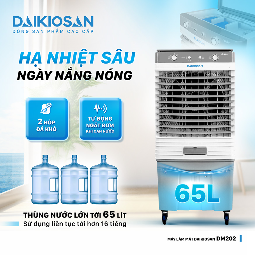 Sản phẩm này là một giải pháp hoàn hảo để đối phó với nhiệt độ cao và giữ cho không gian của bạn luôn mát mẻ, thoải mái và trong điều kiện tốt nhất. Quạt điều hòa không khí DM202 đáp ứng mọi nhu cầu làm mát của bạn và là sự lựa chọn thông minh cho khí hậu nóng bức ở Việt Nam.