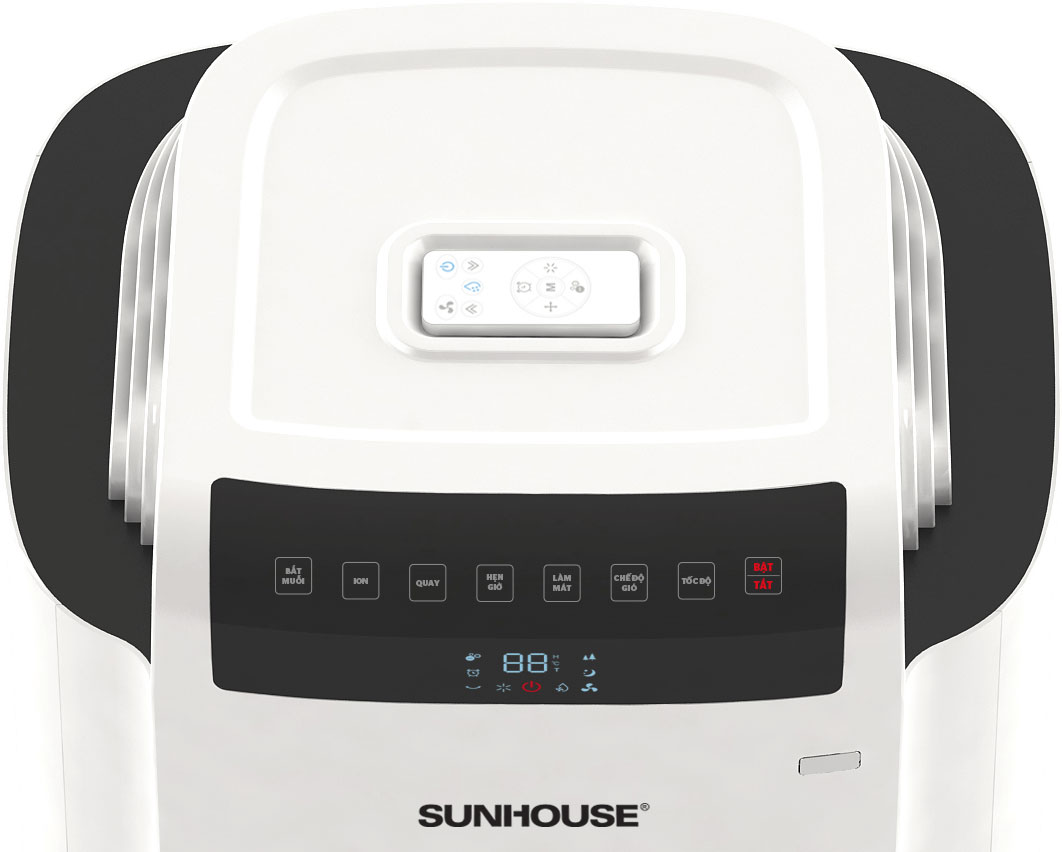 Đỉnh máy làm mát không khí Sunhouse SHD7738 chứa các phím điều khiển hoạt động và điều khiển từ xa