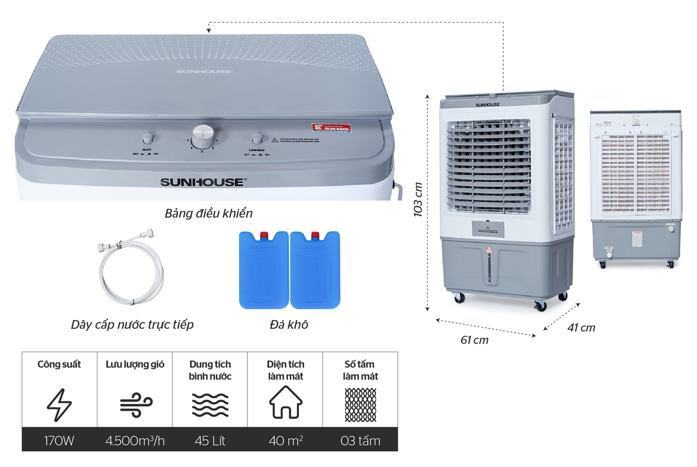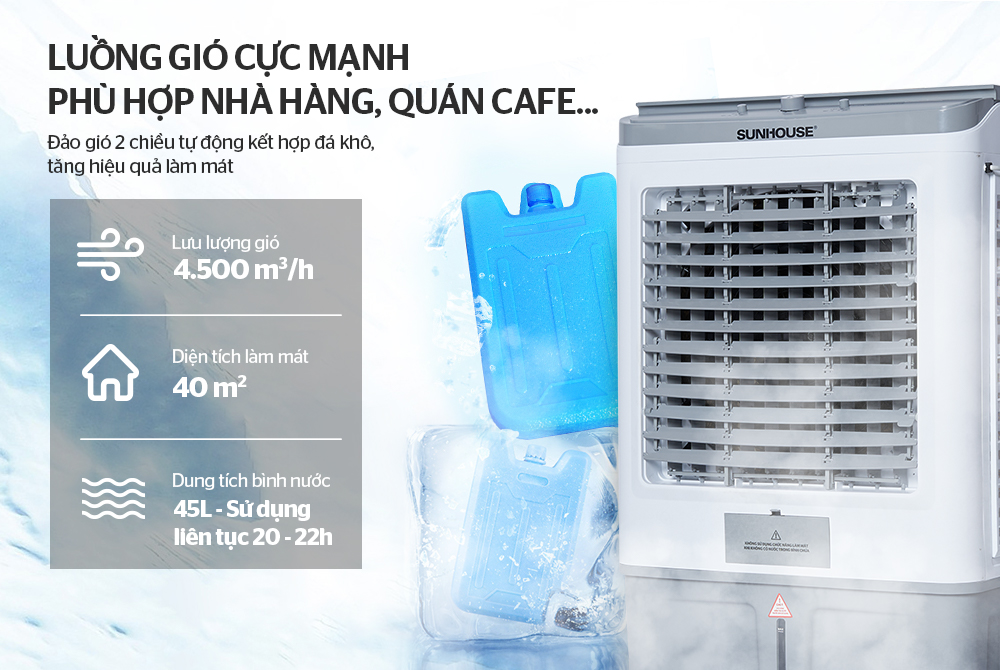 Đặc biệt sản phẩm máy làm mát không khí SUNHOUSE SHD7739 làm mát hiệu quả với không gian mở như quán cafe, cửa hàng, nhà hàng, nhà xưởng..những nơi mà quạt mát thông thường hay điều hòa không thể phát huy hiệu quả làm mát.