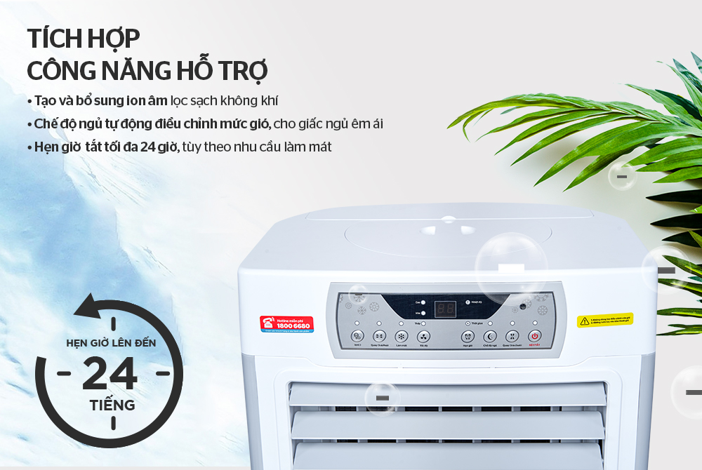 - Công năng bảo vệ sức khỏe: Quạt điều hòa SUNHOUSE SHD7756 tích hợp chức năng Tạo ion (-), lọc và khử mùi khó chịu, loại bỏ bớt các loại bụi siêu nhỏ và các chất rắn lơ lửng trong không khí, cho cả gia đình một luồng không khí mát sạch.