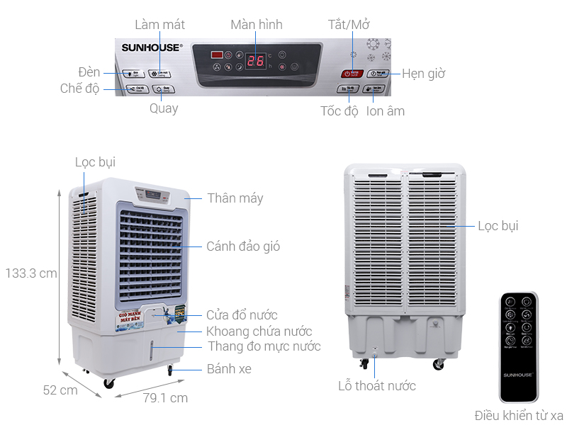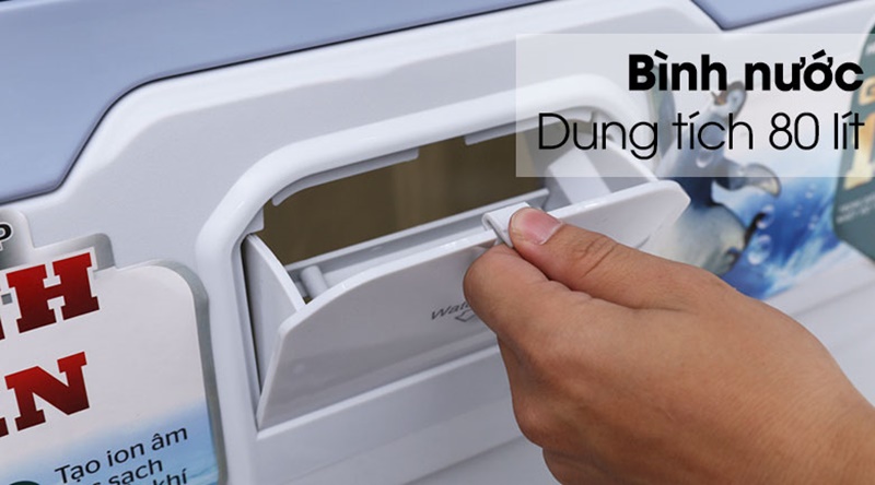 Chế độ làm mát bằng hơi nước với khoang chứa nước lớn đến 80 lít; miệng châm nước thiết kế dễ dùng, tránh đổ nước ra ngoài