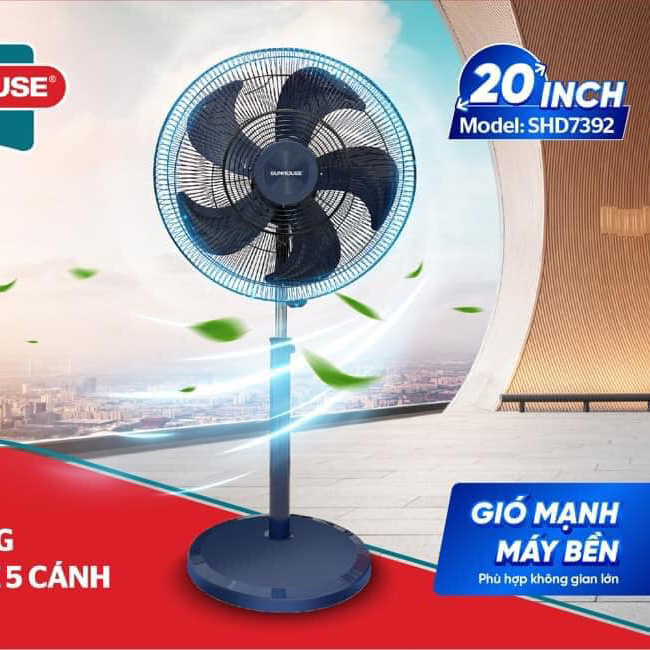 Sunhouse SHD7392 bao gồm 5 cánh quạt, đường kính sải cánh lên đến 45cm giúp đón gió hiệu quả, và tạo ra luồng không khí mát đều đặn, tỏa khắp không gian một cách đồng đều.