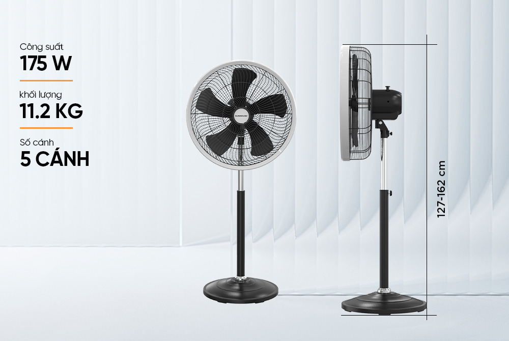 Với thiết kế 5 cánh lớn và đường kính sải cánh rộng, quạt đứng 5 cánh SUNHOUSE SHD7396B tạo luồng gió mạnh, đều và dễ chịu. Gió được phân tán xa và bao phủ toàn bộ không gian, giúp làm mát nhanh chóng, đặc biệt hiệu quả trong phòng khách, phòng ngủ hay khu vực sinh hoạt chung.