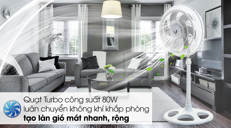 Quạt đứng ASIA VINA VY639790 có công suất lớn lên đến 80W, làm cho quạt hoạt động mạnh mẽ.