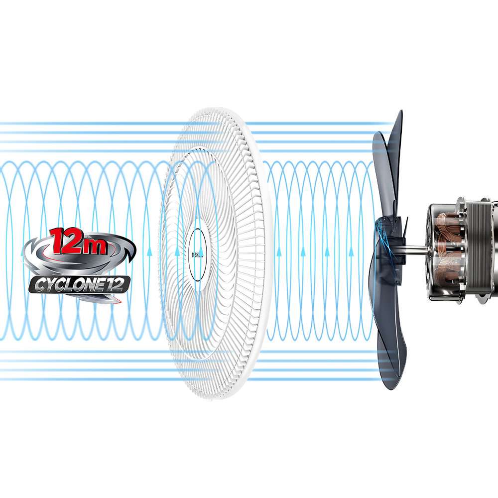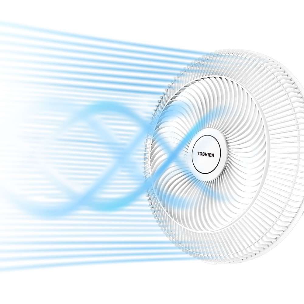 Sự kết hợp tối ưu giữa 3 yếu tố - Lồng quạt xoắn ốc AirBoost tạo ra lốc xoáy, động cơ bạc đạn hiệu suất cao và cánh quạt phản lực - giúp quạt Toshiba có thể tạo ra luồng gió xoáy siêu mạnh, thổi xa lên đến 12 mét.