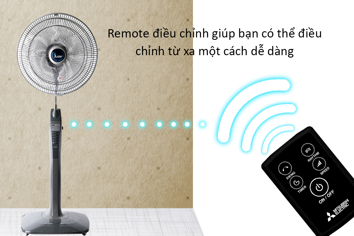 Ngoài ra, quạt còn được trang bị điều khiển từ xa, thuận tiện cho bạn tùy chỉnh các chức năng theo mong muốn mà không cần thao tác trực tiếp trên quạt.