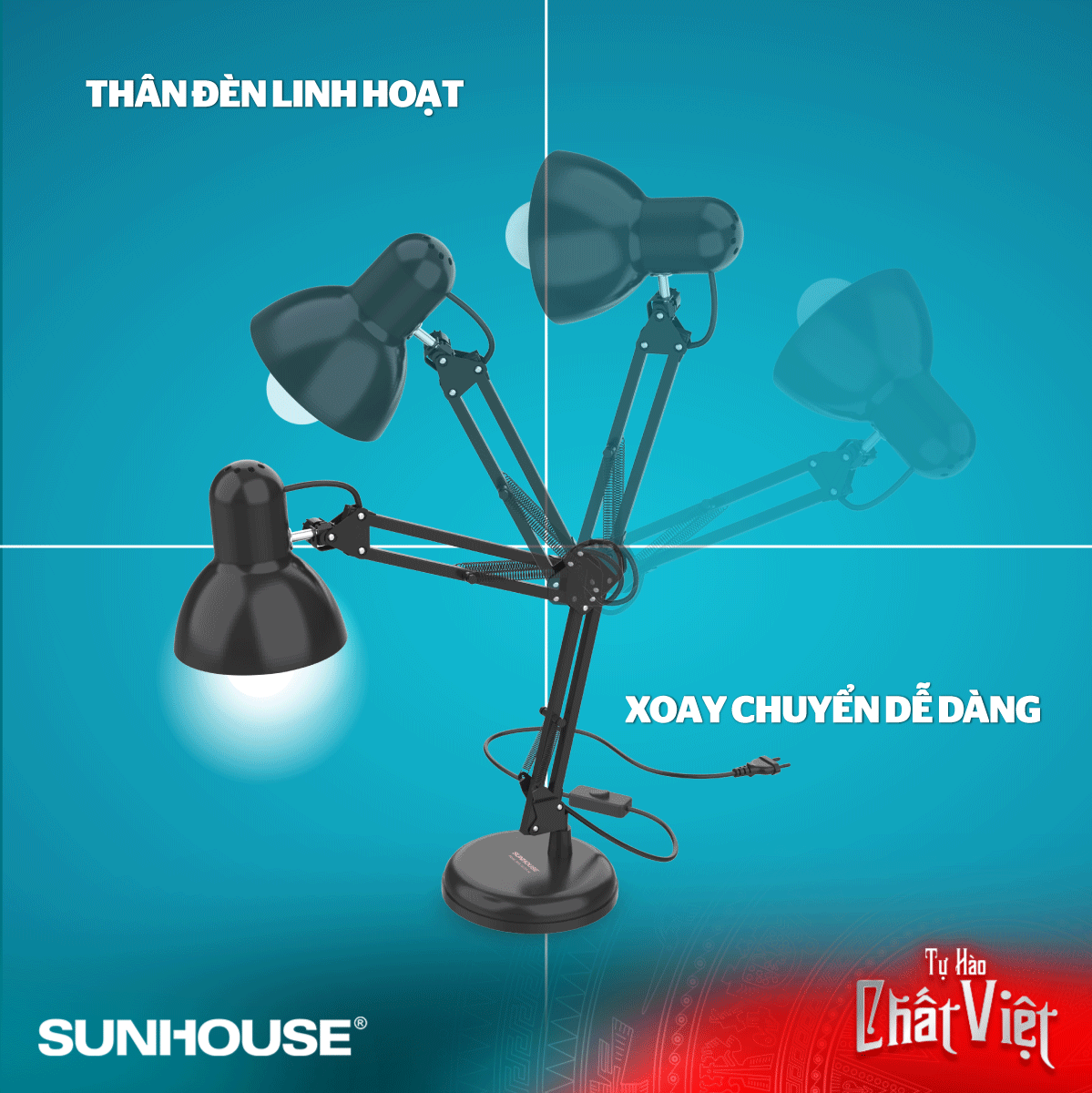 Chọn đèn bàn có thể điều chỉnh linh hoạt thân và chụp của đèn – ví dụ là đèn bàn SUNHOUSE SHE-13LED-A6