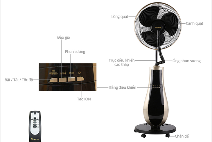 - Ống phun sương: Có vai trò phun sương ra không khí, giúp bầu khí trở nên mát mẻ.