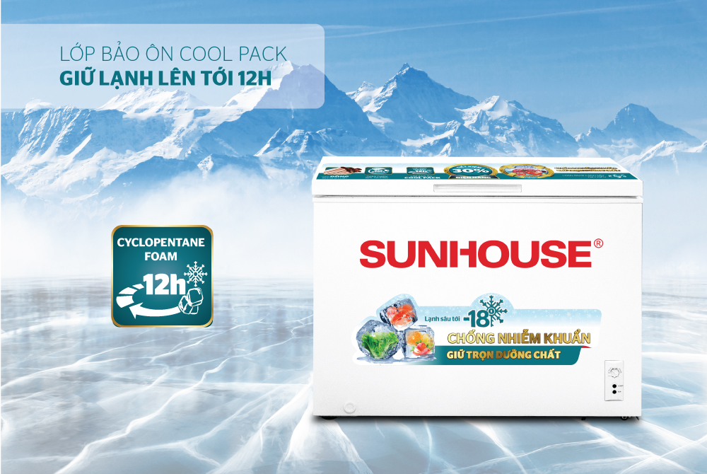 Tích hợp công nghệ lạnh sâu đa chiều 360 độ độc đáo, tủ đông SUNHOUSE đem tới giải pháp đông lạnh sâu tới <= -18 độ C, chống nhiễm khuẩn thực phẩm, lưu giữ trọn vẹn dưỡng chất. Sản phẩm được kiểm soát chất lượng bởi chuyên gia Hàn Quốc, đảm bảo an toàn sức khỏe cho người sử dụng.