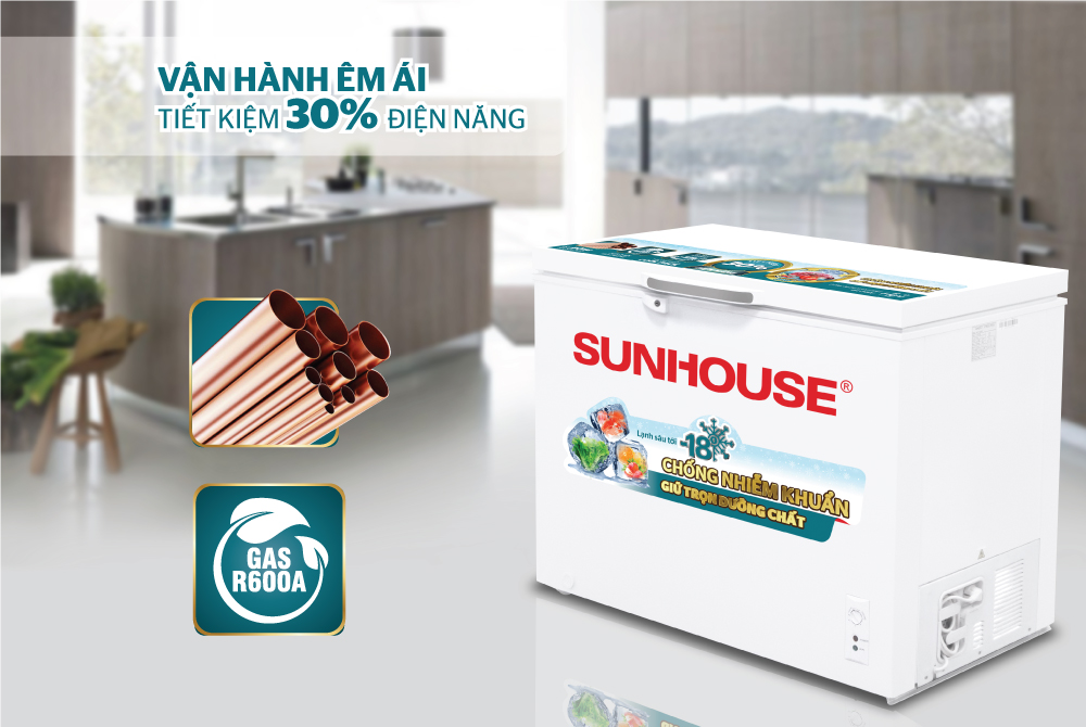 Là một trong những sản phẩm tủ đông chất lượng trên thị trường, tủ đông SUNHOUSE có khả năng làm lạnh nhanh, vận hành êm ái, bền bỉ, tiết kiệm điện năng tới 30% nhờ: