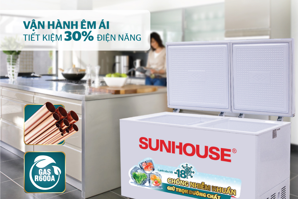 Là một trong những sản phẩm tủ đông chất lượng trên thị trường, tủ đông SUNHOUSE có khả năng làm lạnh nhanh, vận hành êm ái, bền bỉ, tiết kiệm điện năng tới 30% nhờ: