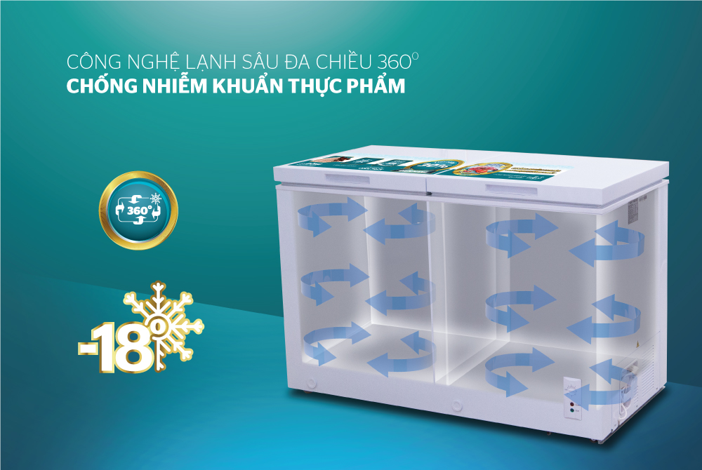 - Giữ nhiệt độ lạnh ổn định với công nghệ lạnh sâu đa chiều 360 độ.
