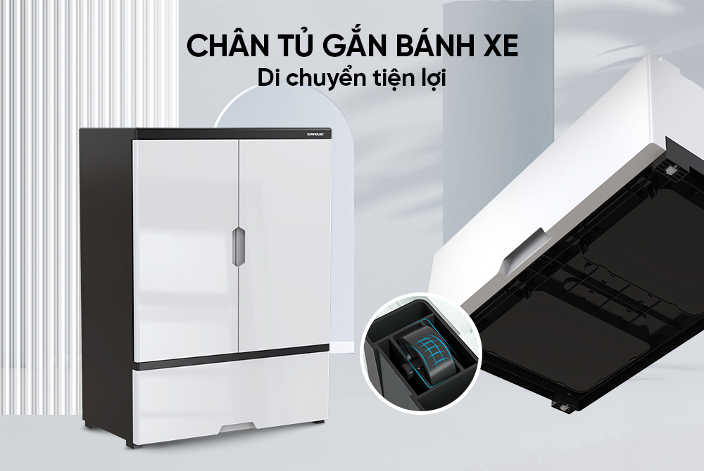 Gắn bánh xe tiện di chuyển, chống nghiêng đổ.