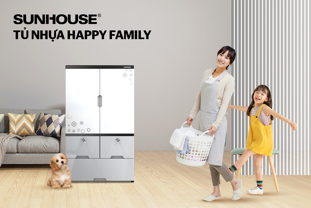 Tên sản phẩm: Tủ nhựa 2 cánh 3 ngăn Happy Family SUNHOUSE KS - CA1177F3