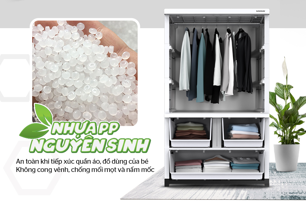 Chất liệu cánh tủ: Nhựa PP nguyên sinh