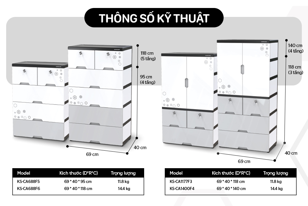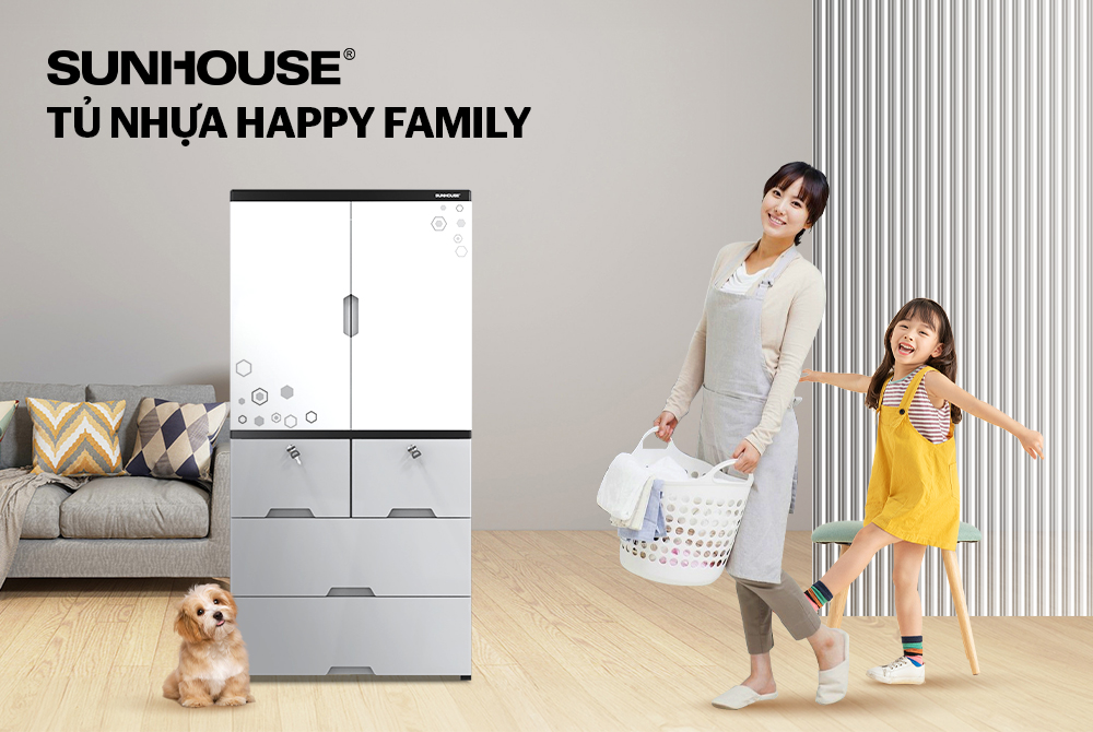 Tên sản phẩm: Tủ nhựa 2 cánh 4 ngăn Happy Family SUNHOUSE KS - CA1400F4