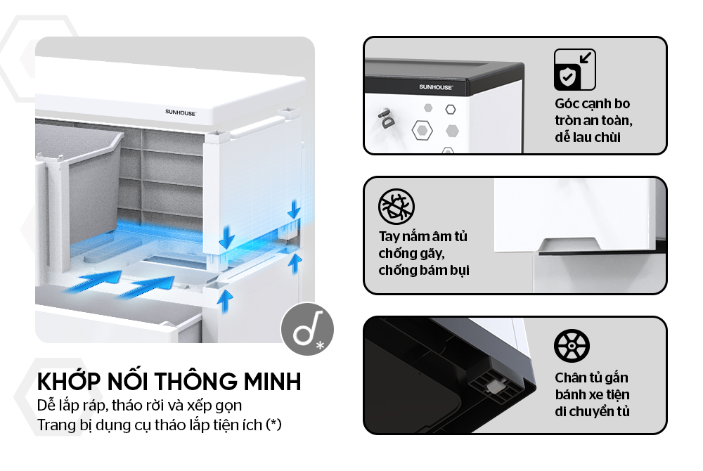 Khớp nối thông minh, dễ dàng tháo lắp tủ.